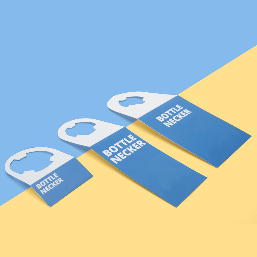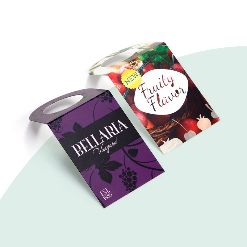 A bottle necker is a small but useful branding tool made for bottles of wine, craft beer, spirits, olive oil, and other bottled goods. Designed to hang easily around the neck of a bottle, it adds a touch of branding or information right where customers look. As part of our beverage and specialty packaging line, bottle neckers offer a low-cost and effective way to share details, run promotions, or simply make your bottle stand out.